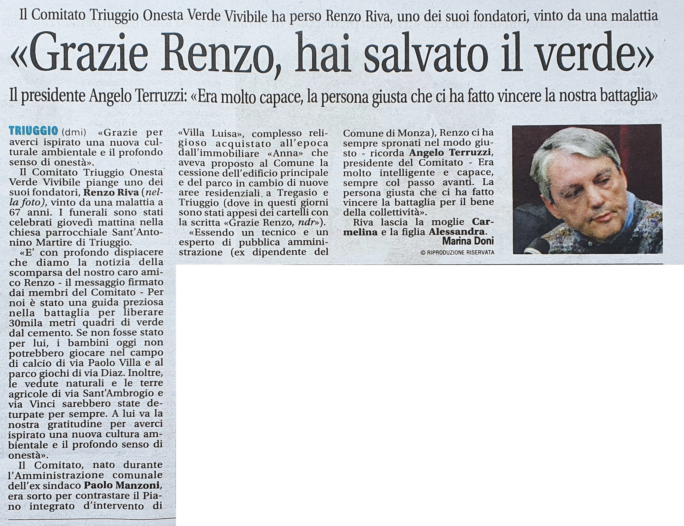 Per noi è stato una guida preziosa nella battaglia per liberare 30.000 metri quadri di verde dal cemento. Se non fosse stato per lui, i bambini oggi non potrebbero giocare al campo di calcio di via Paolo Villa e al parco giochi di via Diaz. Inoltre, le vedute naturali e le terre agricole di via Sant'Ambrogio e via Vinci sarebbero state deturpate per sempre.